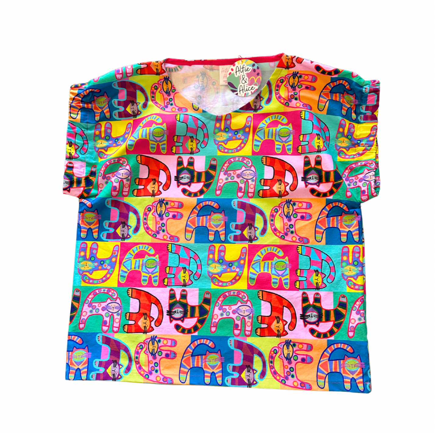The fabric we have used for these elastic cuff tees features artwork from designer, Patterns & Frocks.