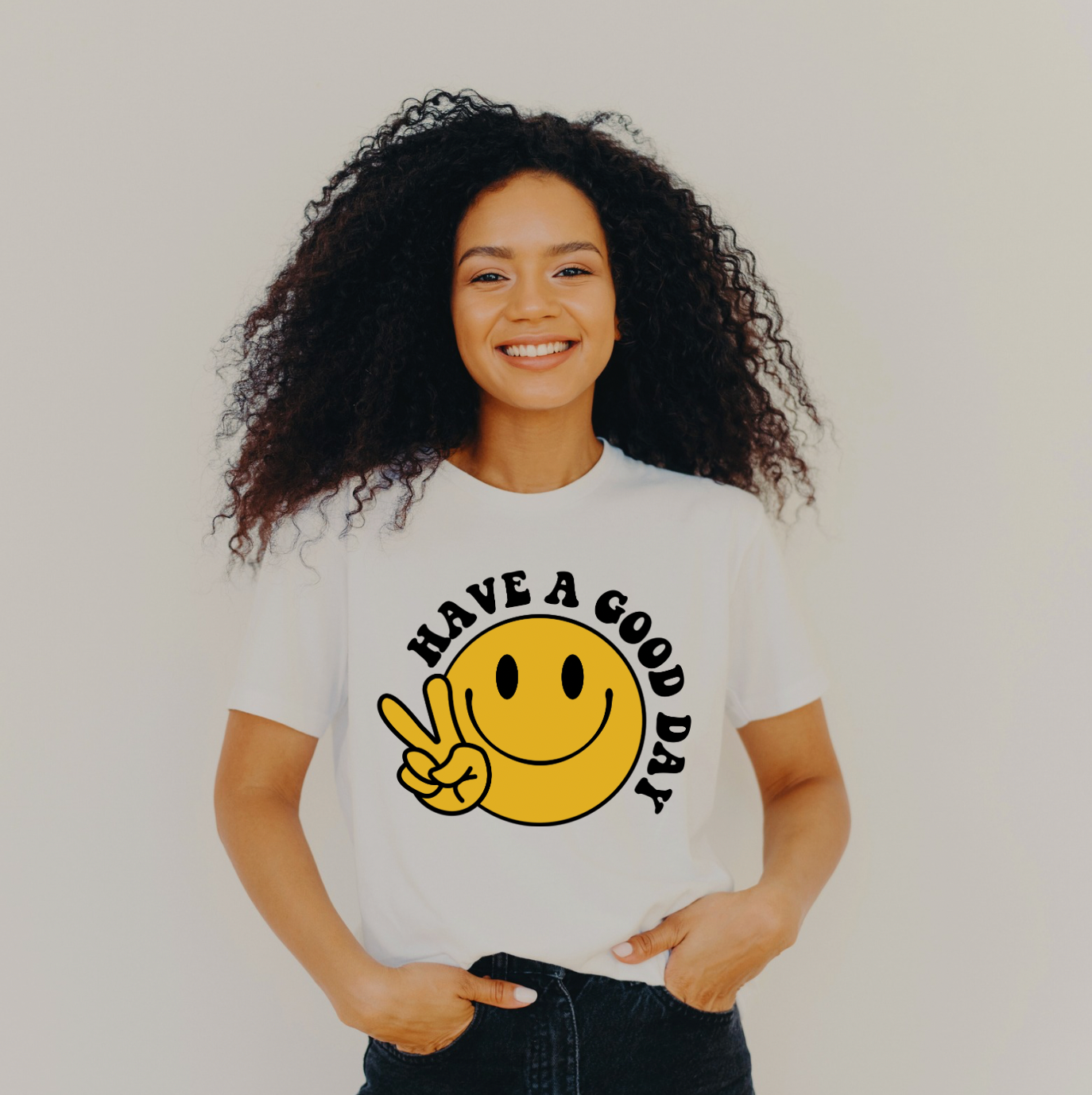 Have A Good Day Tee - what better way to add some good vibes to your outfit! Gorgeous cream coloured tees, featuring our happy smiley have and Have A Good Day quote.