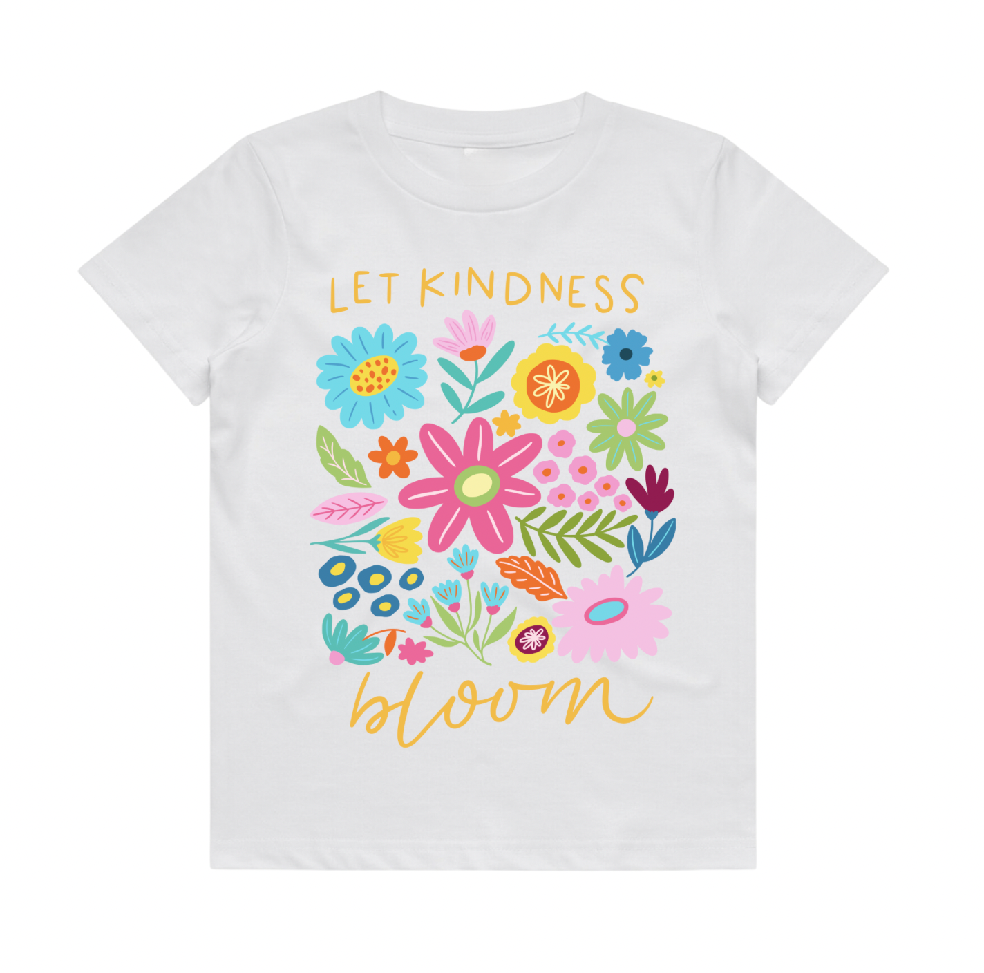 Let Kindness Bloom - colourful and gorgeous, these tees are also available in adult sizes!